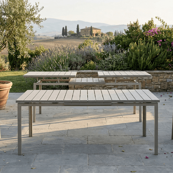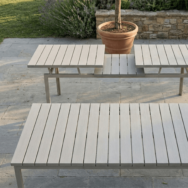Massima versatilità e stile contemporaneo si incontrano in questo tavolo da giardino allungabile, la soluzione definitiva per chi ama ospitare senza rinunciare allo spazio. Grazie al suo pratico meccanismo, il tavolo passa rapidamente da una lunghezza di 180 cm a 240 cm, permettendoti di accogliere comodamente un numero maggiore di ospiti per i tuoi pranzi e cene all’aperto.
