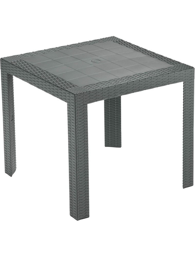 Questo tavolo è il compagno perfetto per le nostre sedie in polipropilene o resina coordinata. Il colore antracite è estremamente versatile e si sposa magnificamente con cuscineria grigia, bianca o con colori vivaci per un look più dinamico. Per la pulizia, è sufficiente un getto d’acqua o un panno umido: la resina non richiede trattamenti speciali.