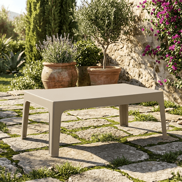 Realizzato in polipropilene ad alta resistenza, questo tavolino è progettato per sfidare gli agenti atmosferici. La protezione UV integrata nel materiale garantisce che la raffinata colorazione tortora rimanga intatta nel tempo, resistendo ai raggi solari senza sbiadire o ingiallire.