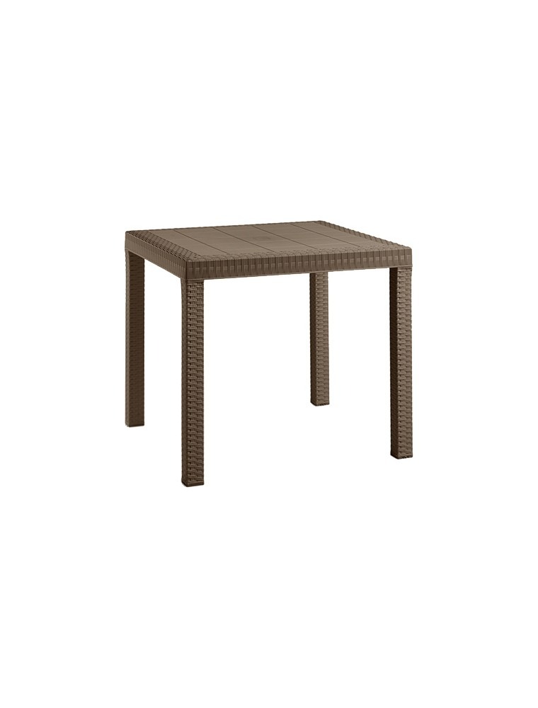 Il color marrone è sinonimo di calore: questo tavolo è perfetto se abbinato a sedie o poltroncine coordinate per un look naturale. Si presta benissimo anche ad accostamenti con cuscineria nei toni del panna o del verde bosco per richiamare la natura. Grazie al suo stile sobrio, è la scelta ideale anche per l’arredo di bar e dehor che cercano una soluzione solida ma facile da gestire.