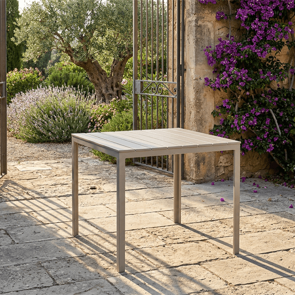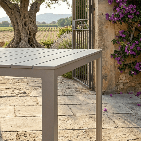 Perché sceglierlo: Ideale per chi cerca un tavolo che unisca il fascino del legno alla praticità dei materiali sintetici di ultima generazione. Resistente al sole e alla pioggia, mantiene inalterato il suo colore nel tempo.