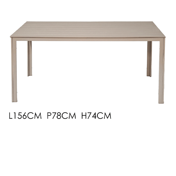 • Piano Tavolo: Doghe in plastica HDPE (alta densità) – Effetto legno color Tortora